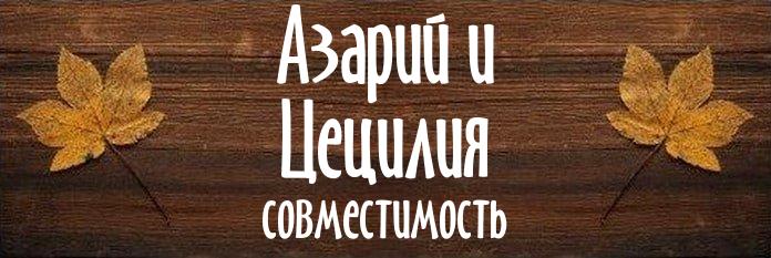 Сходство темпераментов у влюбленных с именами Азарий и Цецилия на редкость большое. Они читают друг друга как открытую книгу. В таких отношениях много доверия и понимания. Но есть большая вероятность появления скуки. Привносите в отношения новое, и они продлятся очень долго.