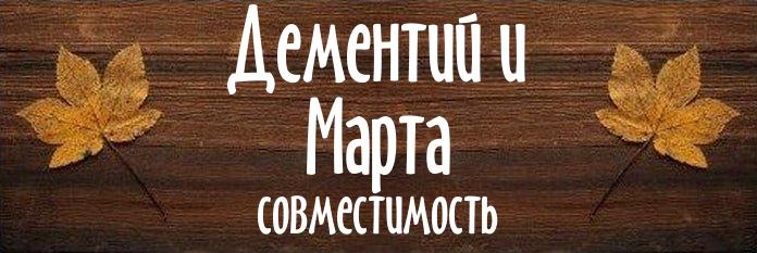 В паре Дементий и Марта несколько одинаковых букв в именах. Это свидетельствует о хороших шансах на серьезные отношения.