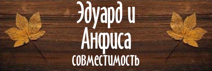 Сходство темпераментов у влюбленных с именами Эдуард и Анфиса на редкость большое. Они читают друг друга как открытую книгу. В таких отношениях много доверия и понимания. Но есть большая вероятность появления скуки. Привносите в отношения новое, и они продлятся очень долго.