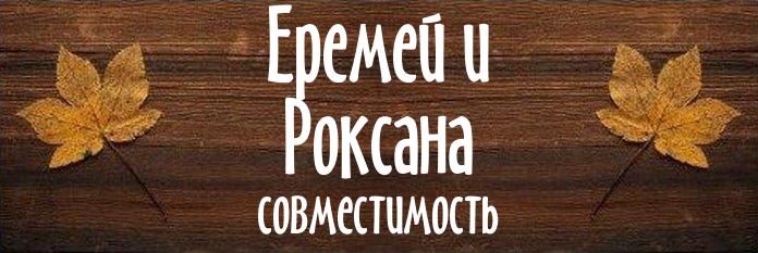 Сходство темпераментов у влюбленных с именами Еремей и Роксана на редкость большое. Они читают друг друга как открытую книгу. В таких отношениях много доверия и понимания. Но есть большая вероятность появления скуки. Привносите в отношения новое, и они продлятся очень долго.