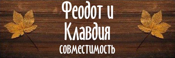 | Совпадение темпераметров | 85 | Влюбленные в паре Феодот и Клавдия дополняют друг друга. В их темпераментах бывают противоречивые черты, но они сглаживаются тесным взаимодействием. Характеры четко выделяются в сексуальной жизни. |