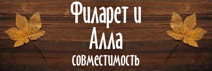 | Перспективы | 85 | Пара Филарет и Алла может построить крепкие и доверительные отношения, однако для этого им необходимо будет много работать над собой. Если они смогут избавиться от собственного эгоизма и научатся ставить себя на место партнера, отношения сохранятся. |