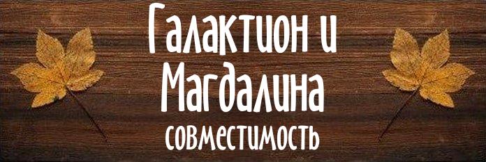 Сходство темпераментов у влюбленных с именами Галактион и Магдалина на редкость большое. Они читают друг друга как открытую книгу. В таких отношениях много доверия и понимания. Но есть большая вероятность появления скуки. Привносите в отношения новое, и они продлятся очень долго.