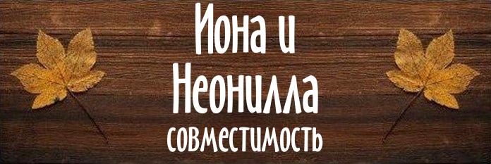 В паре Иона и Неонилла несколько одинаковых букв в именах. Это свидетельствует о хороших шансах на серьезные отношения.