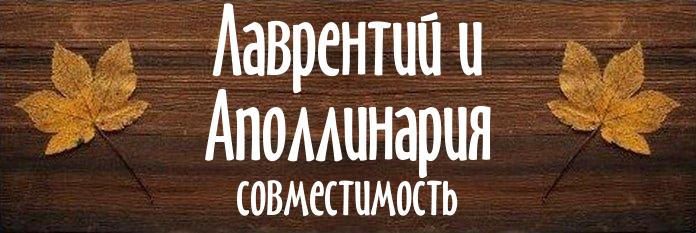 Совместимость имен Лаврентий и Аполлинария (72%)