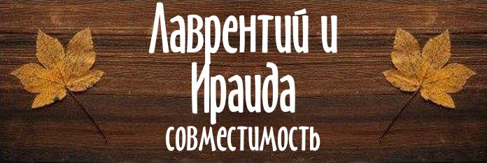 Сходство темпераментов у влюбленных с именами Лаврентий и Ираида на редкость большое. Они читают друг друга как открытую книгу. В таких отношениях много доверия и понимания. Но есть большая вероятность появления скуки. Привносите в отношения новое, и они продлятся очень долго.