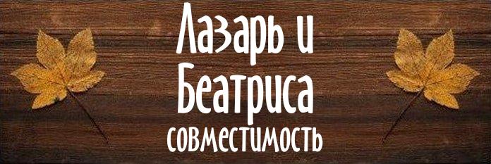 Сходство темпераментов у влюбленных с именами Лазарь и Беатриса на редкость большое. Они читают друг друга как открытую книгу. В таких отношениях много доверия и понимания. Но есть большая вероятность появления скуки. Привносите в отношения новое, и они продлятся очень долго.