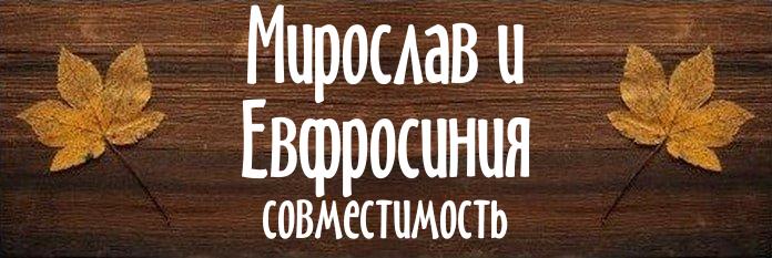 В паре Мирослав и Евфросиния несколько одинаковых букв в именах. Это свидетельствует о хороших шансах на серьезные отношения.