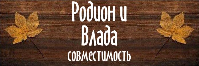 | Быт | 92 | Пара влюбленных с именами Родион и Влада любят строить общий быт. В простых задачах находится подтверждение хорошего сочетания характеров. Партнеры быстро находят общие рутинные занятия. Они дают временную передышку. |